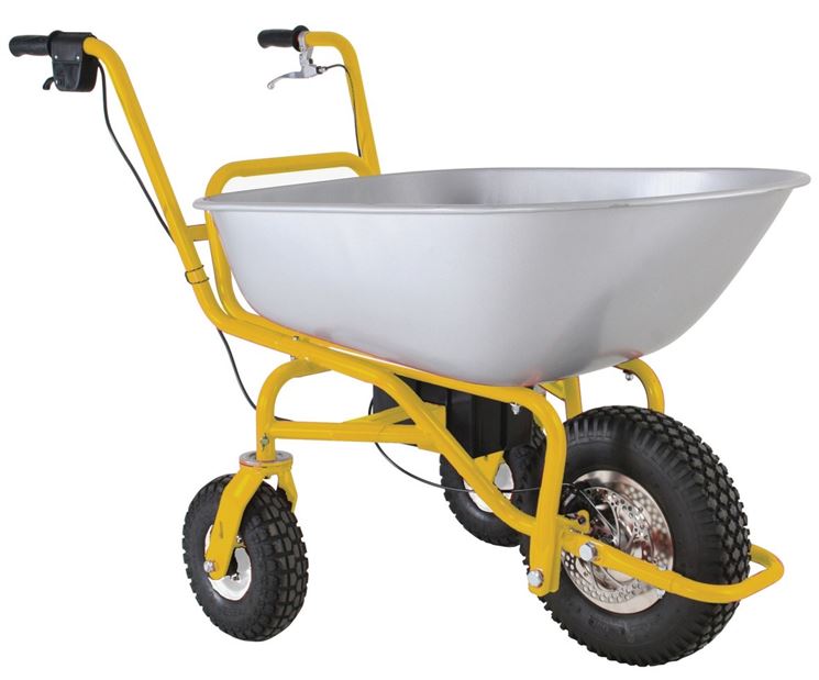 Directamente desde el «apartado de novedades», se han introducido las carretillas motorizadas para facilitar aún más el trabajo, mediante la integración de un motor eléctrico o de gasolina, que hace que se muevan sin necesidad de empujar; algunos incluso son silenciosos, con pocas dificultades de mantenimiento y fáciles de maniobrar incluso en terrenos empinados o irregulares. Normalmente estas carretillas pueden soportar una carga de 300 a 500 kilos. Encontramos modelos que permiten volcar manualmente la carrocería mediante una palanca, o incluso otros que tienen un gatillo para desactivar el motor y utilizar la carretilla de forma tradicional. A menudo en carretillas con motor eléctrico es posible comprobar el estado de la batería, mostrado visiblemente, además estos motores no dan contaminación química y por tanto son ecológicos.