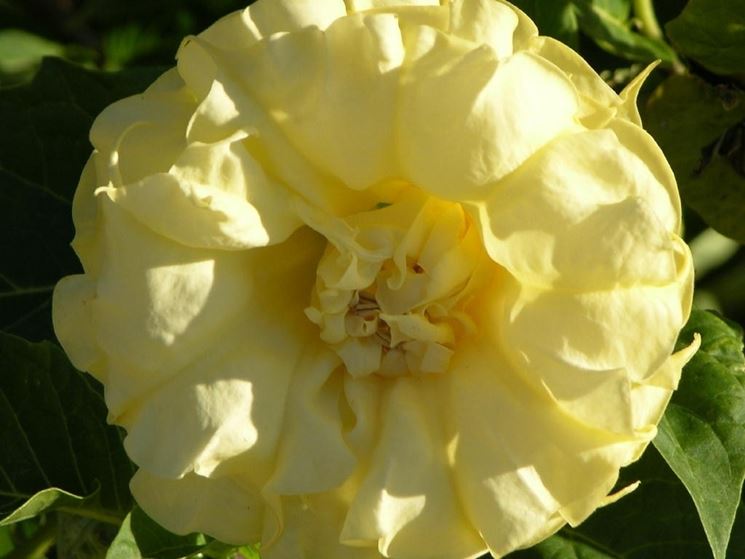 Entre las variedades de especies vegetales más particulares y de formas elegantes pertenecientes al género Datura, se encuentra la denominada Datura Double Purple. Las inflorescencias son muy grandes, las corolas tubulares son dobles, blancas con intensos matices de violeta y lila. Flores blancas de apariencia caída, intensamente perfumadas, caracterizan a la especie llamada Datura Alba mientras que la Datura sanguinea se cultiva como arbusto o pequeño árbol de jardín. Las flores se desarrollan en el extremo de las ramificaciones, de porte colgante e inodoro, son de color rosa y naranja. Las flores primaverales de color amarillo brillante y abundantes distinguen las plantas perennes de Datura chlorantha, utilizadas con fines ornamentales tanto como especímenes individuales para cultivar en macetas y en el suelo.